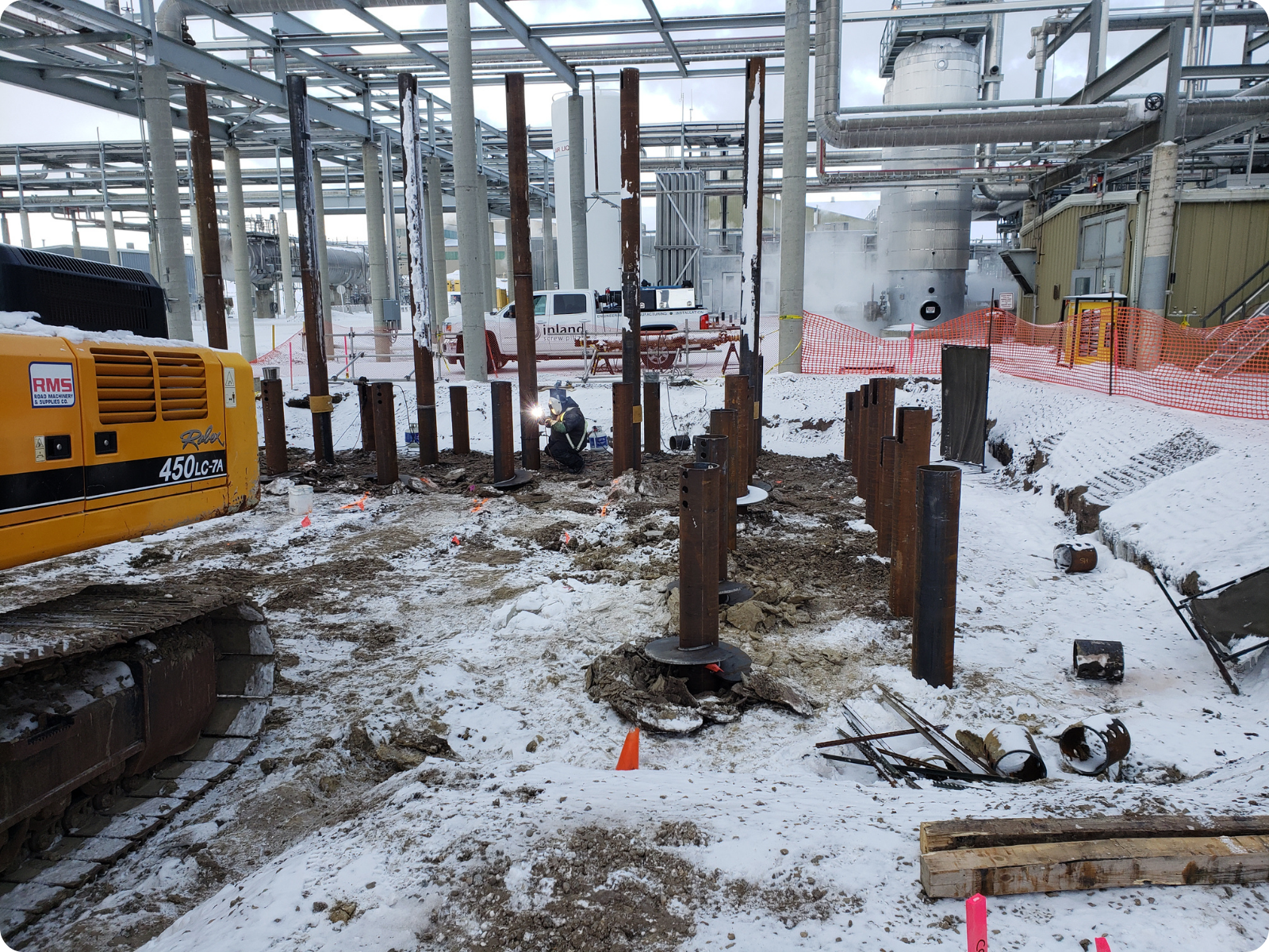 Inland was contracted directly by Orbis Engineering to engineer, fabricate, and install screw piles for the Hut 8 Bitcoin Mining Facility in Medicine Hat, Alberta.